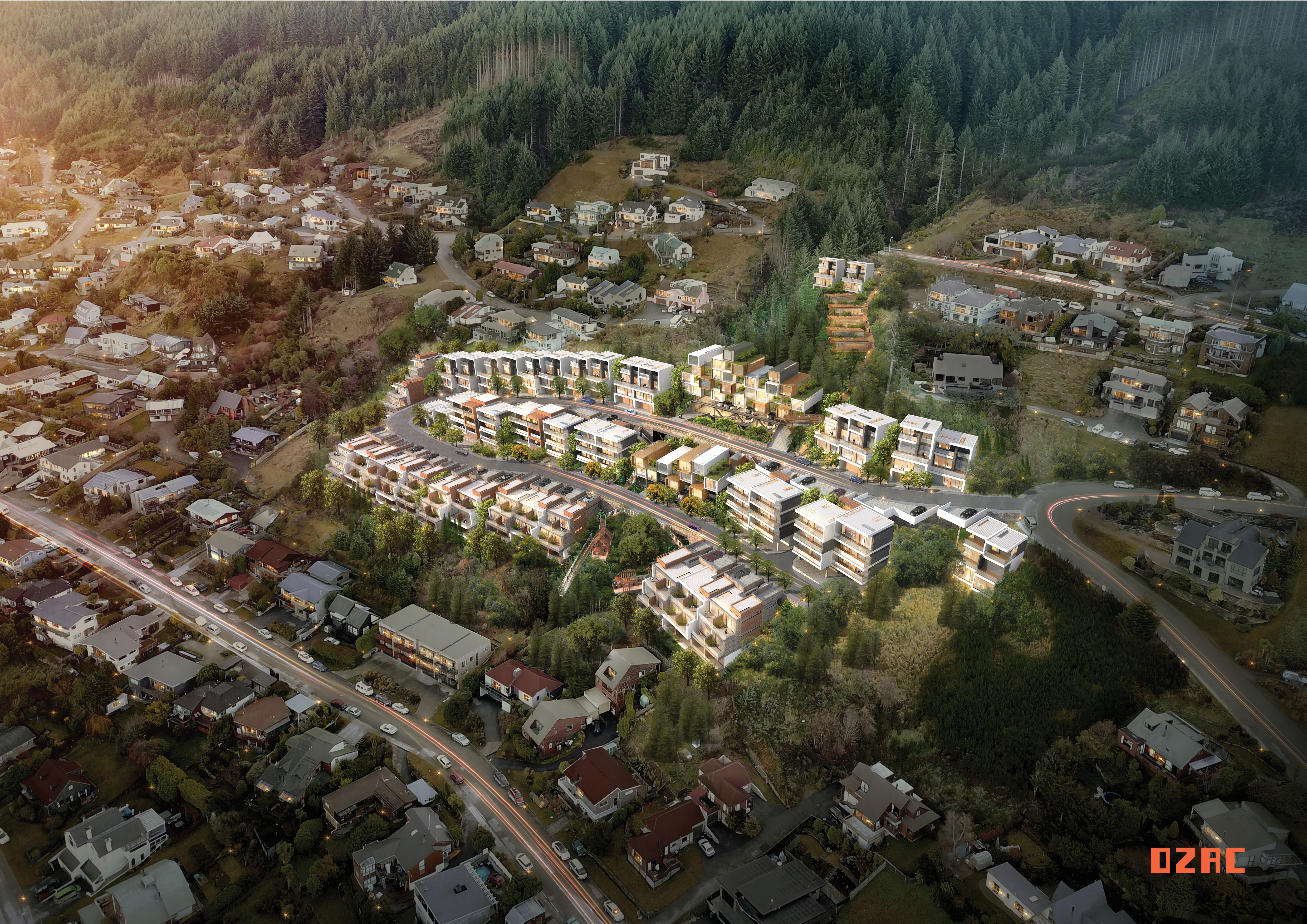 本项目直面浩瀚的Wakatipu湖和雄伟的Remarkable山脉,坐享皇后镇最佳的景观角度。地块占地面积总计约2.2公顷,是皇后镇核心区域目前最大的住宅项目,建造高品质独栋,联排,精品公寓,特色桥屋及树屋。