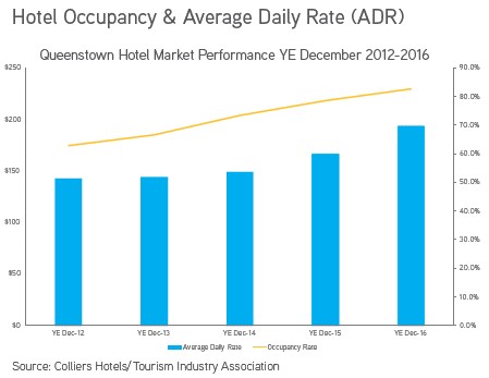 2016年皇后镇酒店的平均出租率接近90%,平均房价达到202纽币(约1000元人民币)每晚。皇后镇是个四季皆宜的旅游胜地,没有明显的淡旺季。每年10月到次年4月复活节,是游客人数最多的时段。四五星级酒店常常一房难求,房价高达2000-4000元人民币/晚。受制于供应的短缺,酒店和度假屋房价预测还会继续保持稳定的增长。皇后镇目前在售的度假屋和酒店项目普遍的预测出租回报率在6-7%左右,净收益在5%以上。